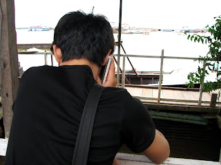 Floating village at Tonle Sap ...err ignore the man...lol! |